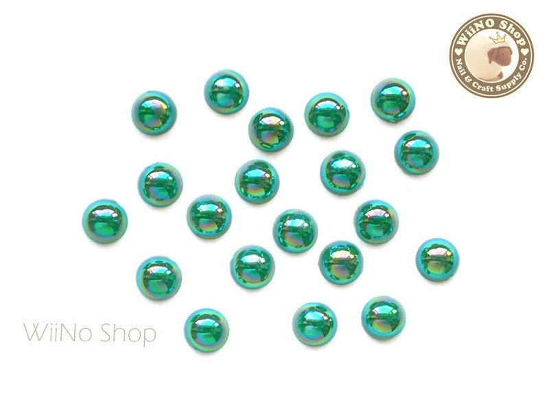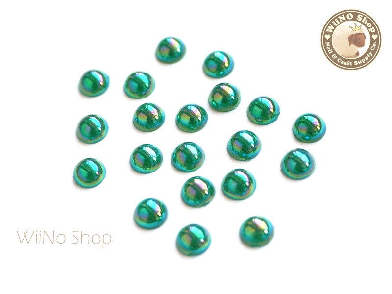 5mm AB Metallic Green Half Round Flat Back Acrylic Cabochon Nail Art - 15 pcs