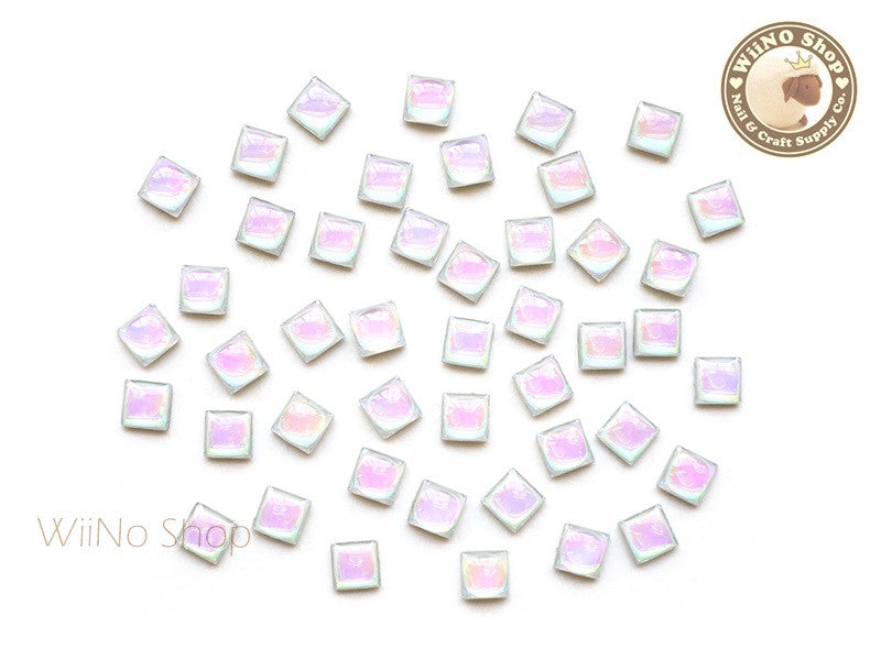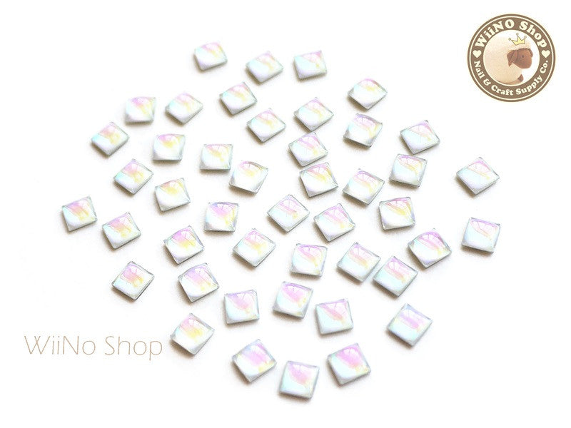 5mm AB Rainbow Opal Square Flat Back Acrylic Cabochon Nail Art - 10 pcs