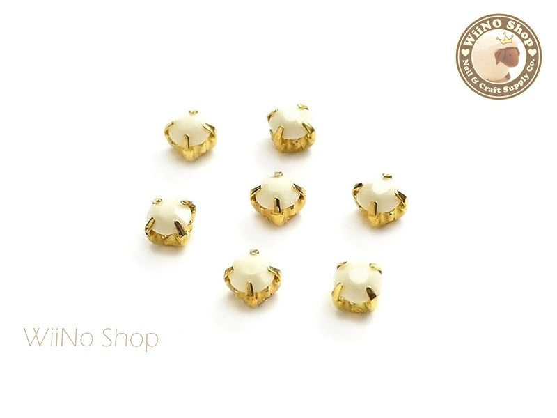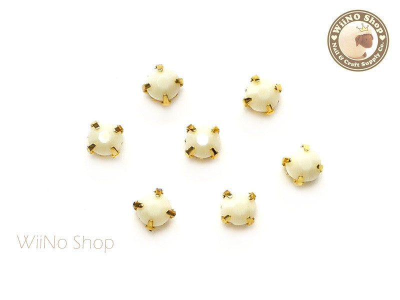 5mm Beige Round Acrylic Rhinestone with Setting - 5 pcs
