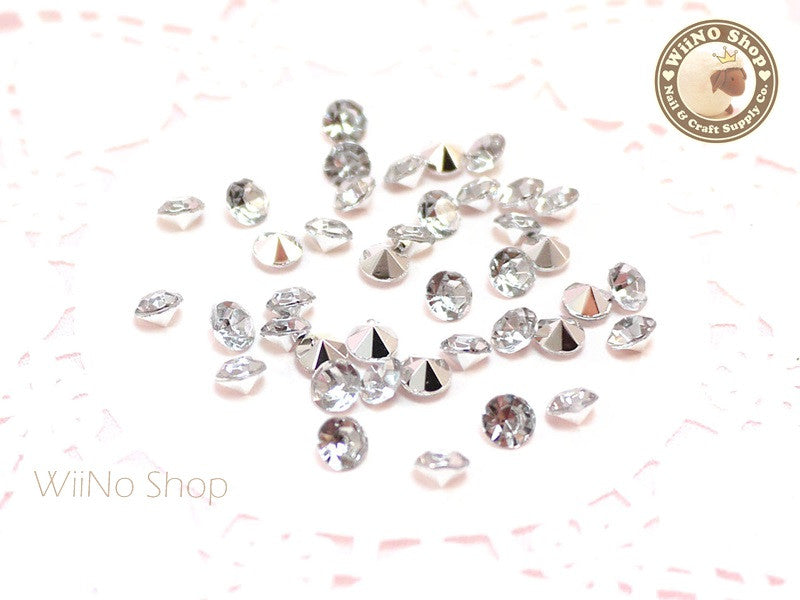 5mm Clear Round Diamond Style 3D Point Back Acrylic Rhinestone - 50 pcs