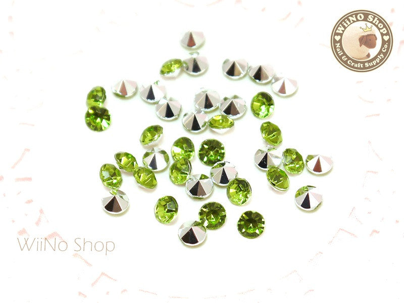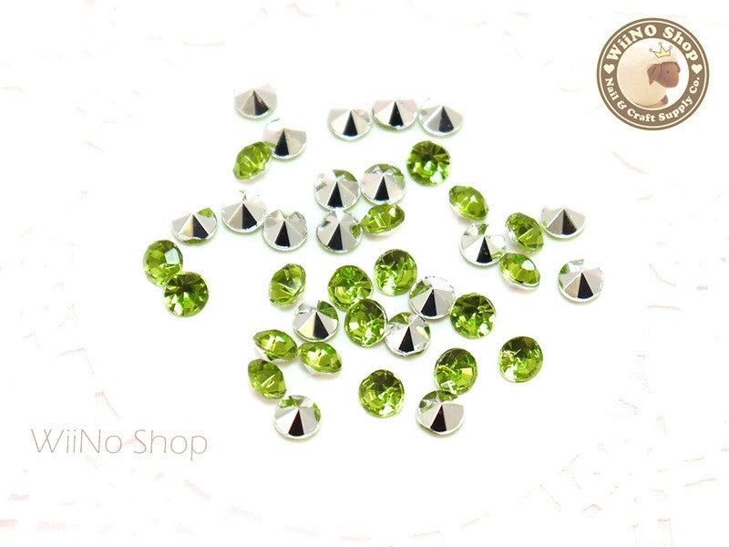 5mm Light Green Perdot Round Diamond Style 3D Point Back Acrylic Rhinestone - 50 pcs