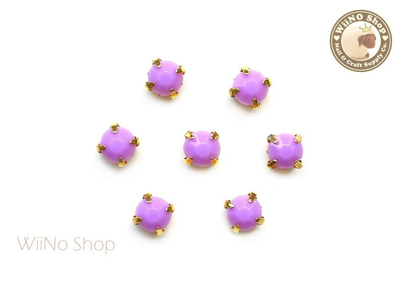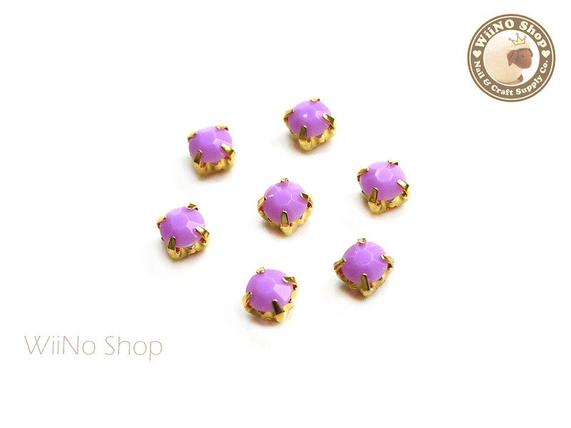 5mm Purple Round Acrylic Rhinestone with Setting - 5 pcs