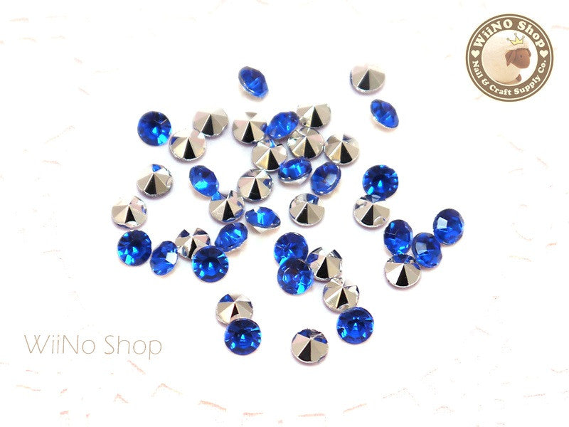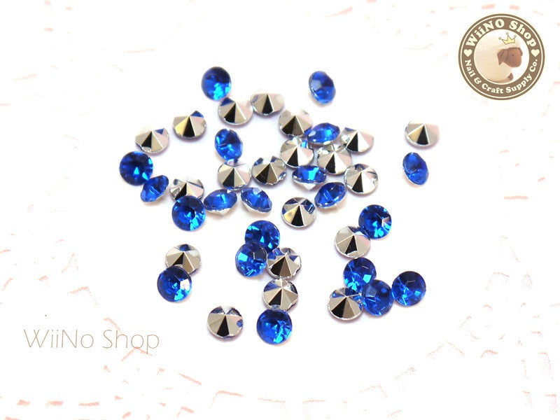 5mm Royal Blue Cobalt Round Diamond Style 3D Point Back Acrylic Rhinestone - 50 pcs