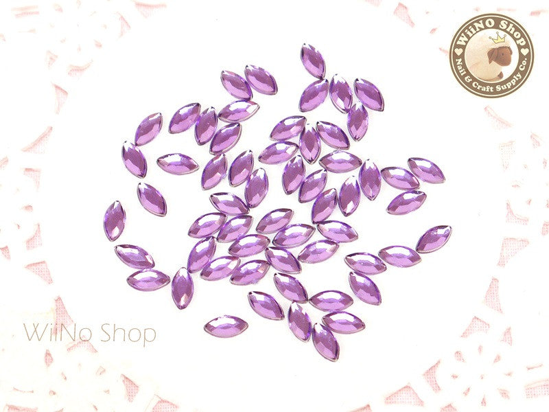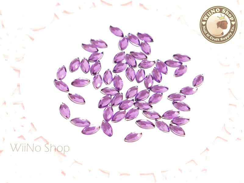 6 x 3mm Purple Amethyst Marquise Navette Flat Back Acrylic Rhinestone Nail Art - 100 pcs