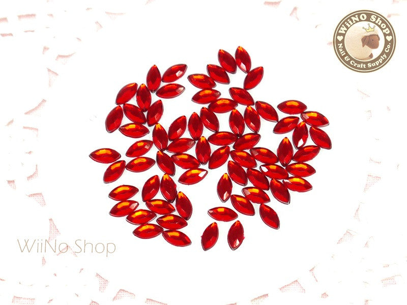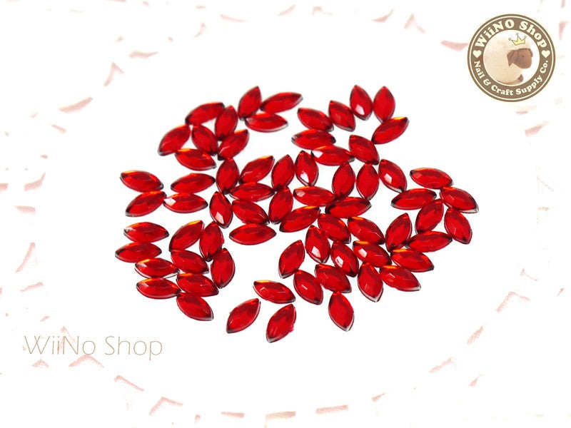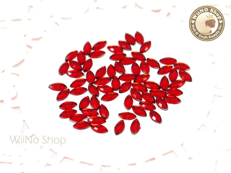 6 x 3mm Red Siam Marquise Navette Flat Back Acrylic Rhinestone Nail Art - 100 pcs