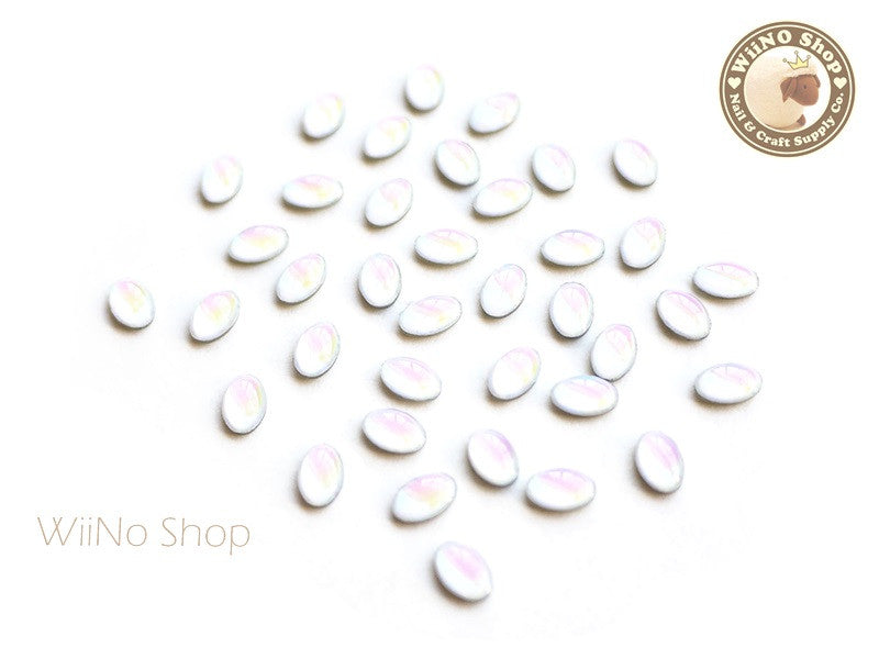 4 x 6 mm AB Rainbow Opal Oval Flat Back Acrylic Cabochon Nail Art - 10 pcs