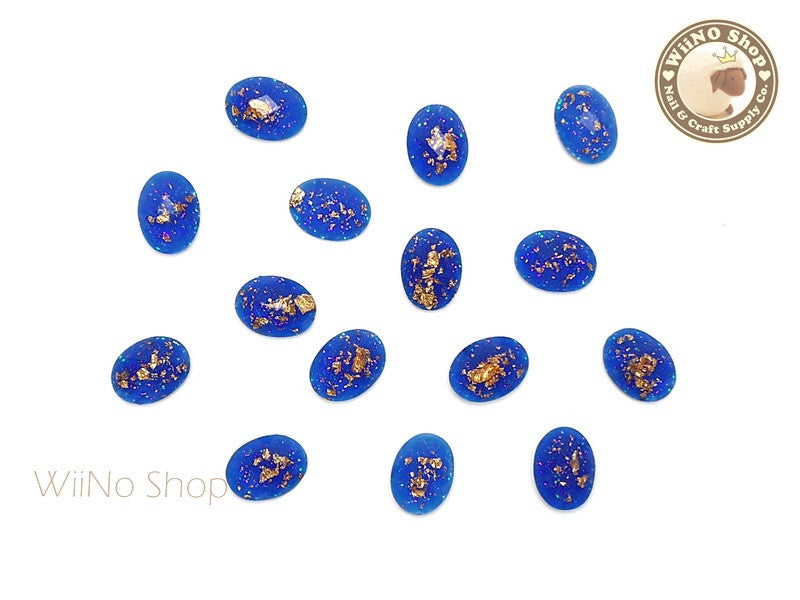 6 x 8mm Royal Blue Gold Foil Glitter Oval Flat Back Acrylic Nail Art Rhinestone - 10 pcs