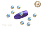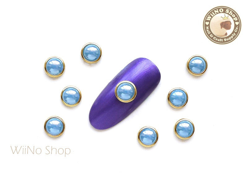 6mm Blue Pearlized Glass Stone Gold Rim Cabochon Nail Art Decoration- 10 pcs