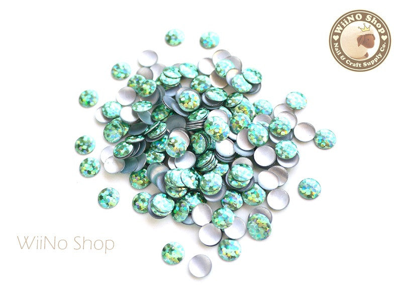6mm Green Holographic Round Metal Studs - 50 pcs