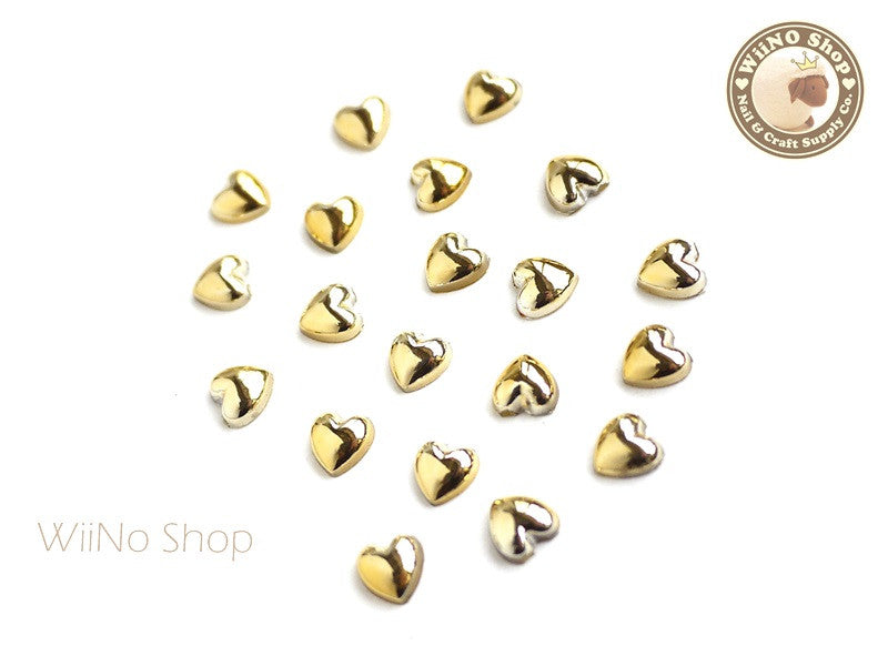 6mm Heart Gold Chrome Flat Back Acrylic Cabochon Nail Art - 10 pcs