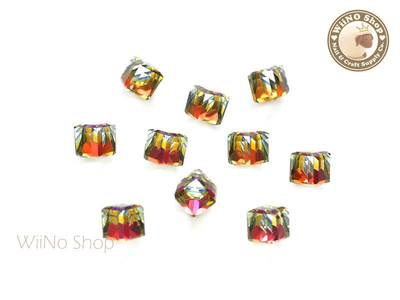 6mm Purple Rainobow 3D Square Cube Crystal Rhinestone - 5 pcs