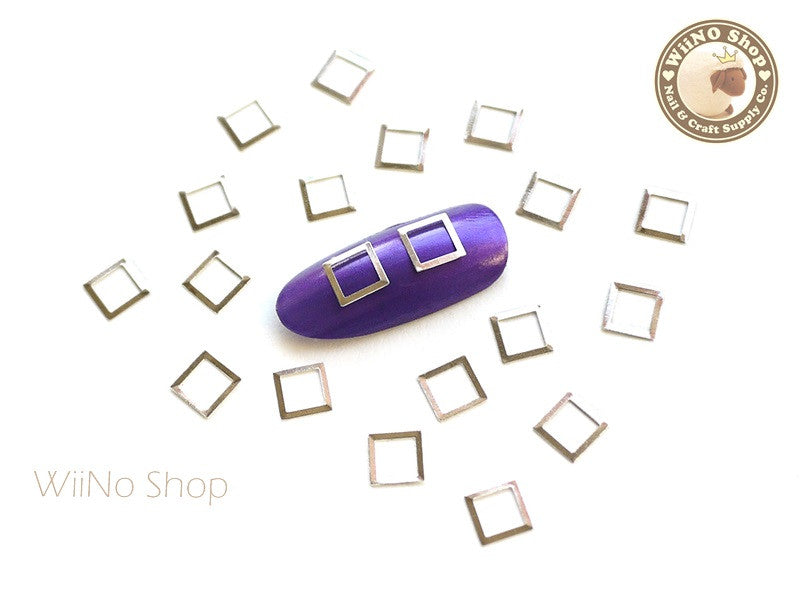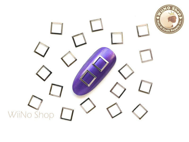 6mm Silver Square Hollow Frame Nail Art Decoration - 20 pcs