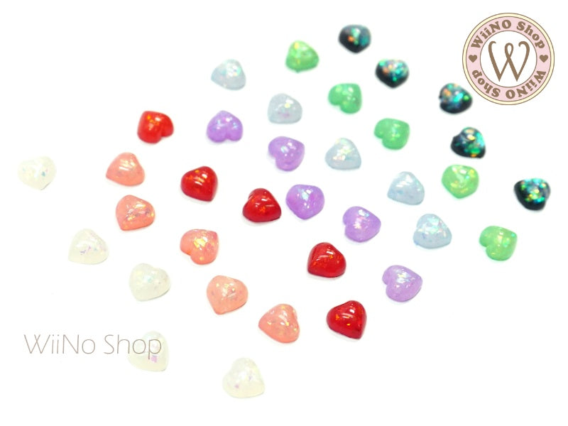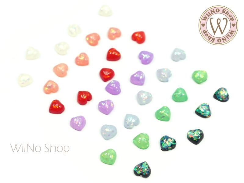 6mm Sparkle Heart Flatback Nail Art Cabochon - 10 pcs