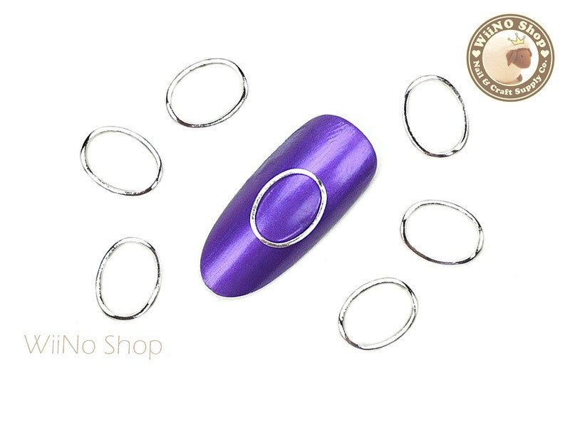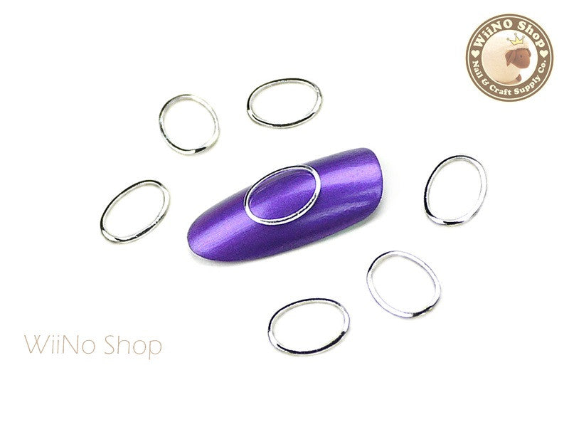 7 x 10mm Silver Oval Metal Frame Decoration - 5 pcs