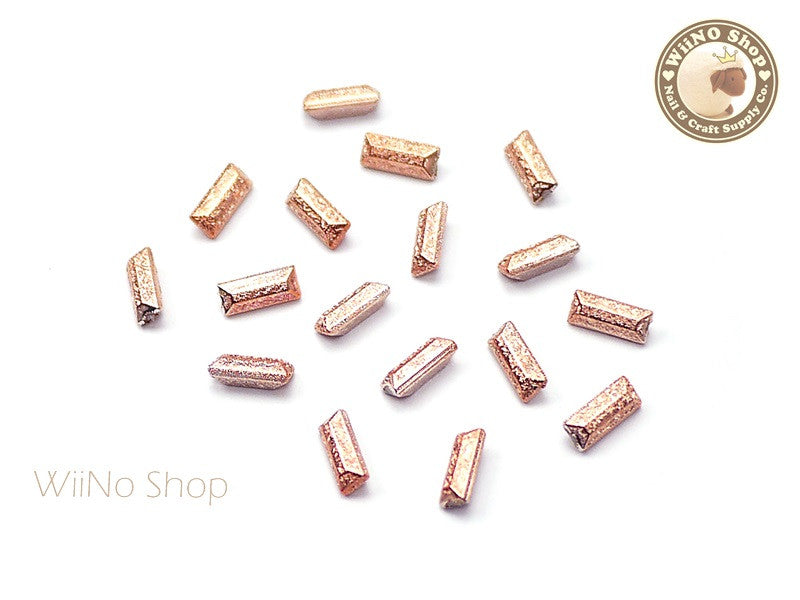 7 x 3mm Rose Gold Textured Rectangle 3D Point Back Rhinestone - 10 pcs