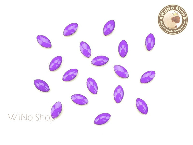 7 x 4mm Purple Marquise Enamel Cabochon with Setting - 5 pcs
