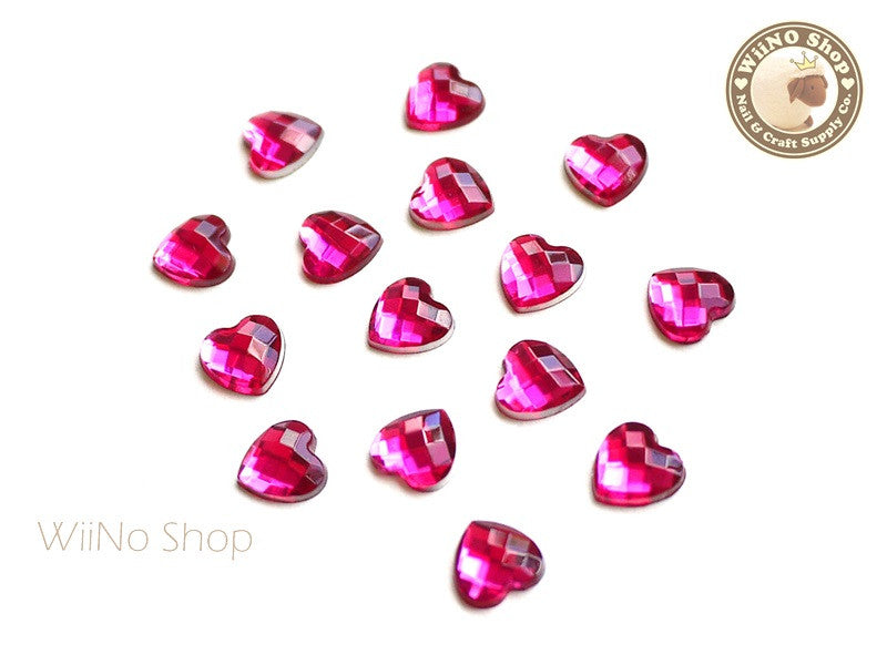 8mm Fuchsia Hot Pink Heart Square Cut Flat Back Acrylic Rhinestone - 15 pcs
