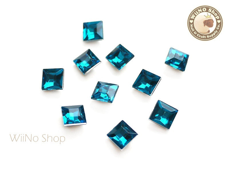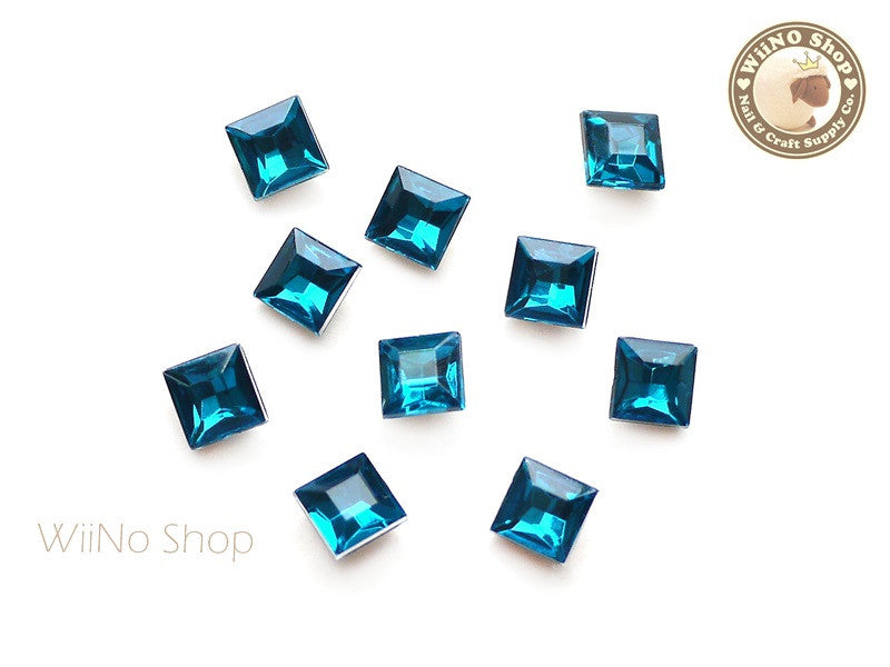 8mm Peacock Green Square 3D Point Back Acrylic Rhinestone - 15 pcs