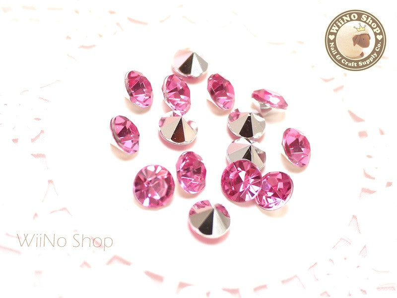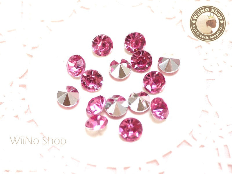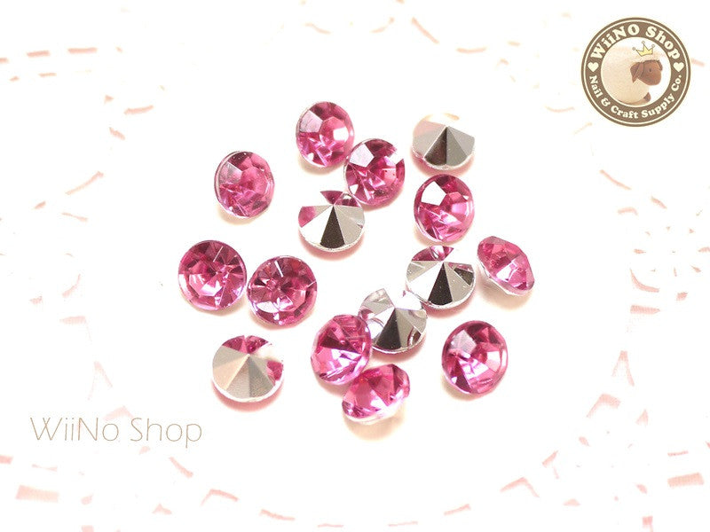 8mm Pink Rose Round Diamond Style 3D Point Back Acrylic Rhinestone - 15 pcs