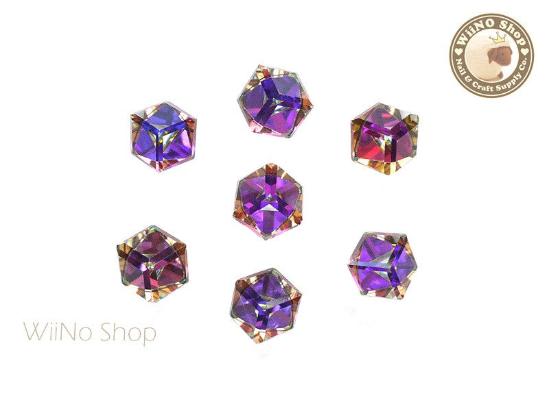 8mm Purple Rainbow 3D Square Cube Crystal Rhinestone - 3 pcs