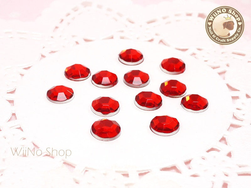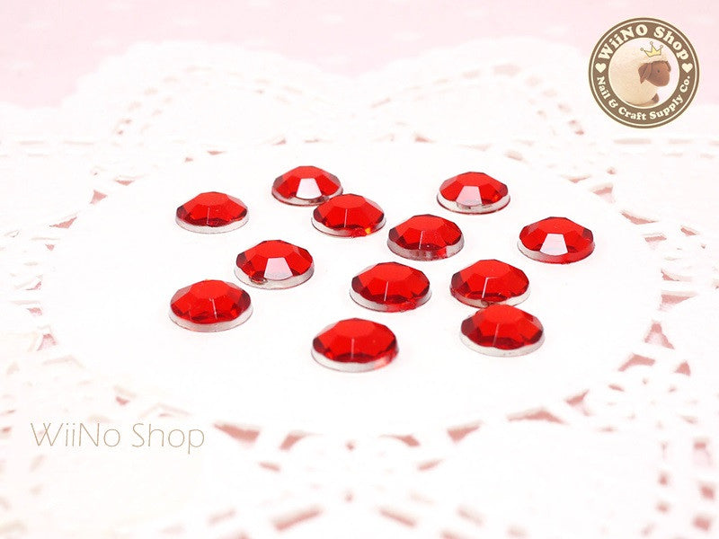 8mm Red Light Siam Round Flatback Acrylic Rhinestone - 50 pcs