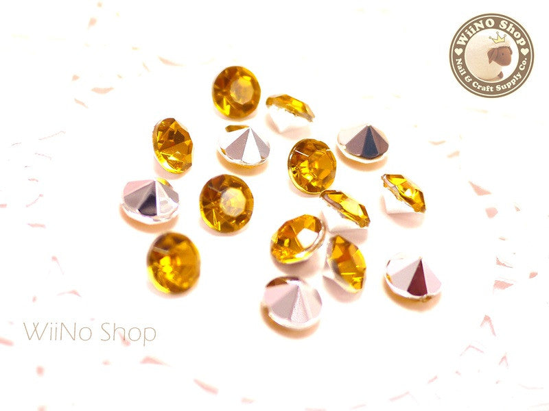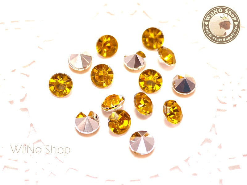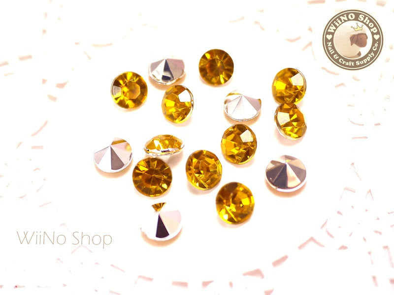 8mm Yellow Topaz Round Diamond Style 3D Point Back Acrylic Rhinestone - 15 pcs