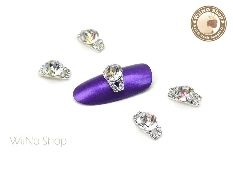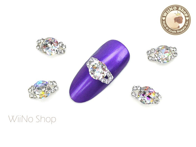 AB Clear Crystal Diamond Ring Nail Metal Charm - 2 pcs