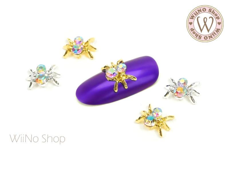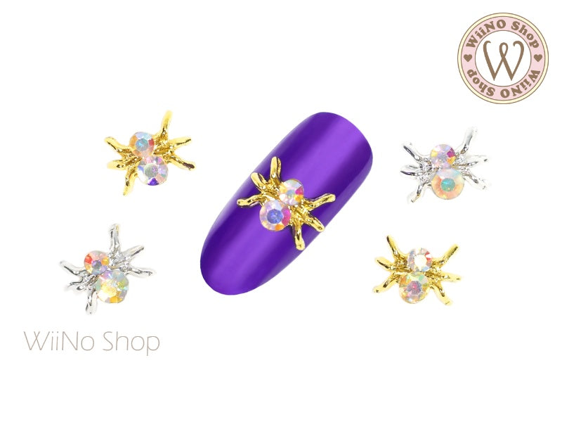 AB Clear Crystal Spider Nail Metal Charm - 2 pcs
