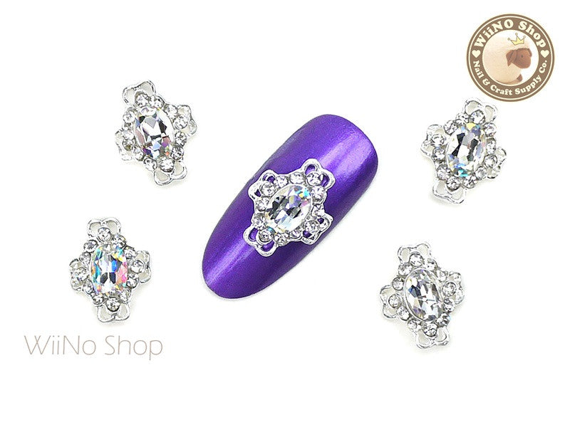 AB Clear Crystal Vintage Cross Nail Metal Charm - 2 pcs