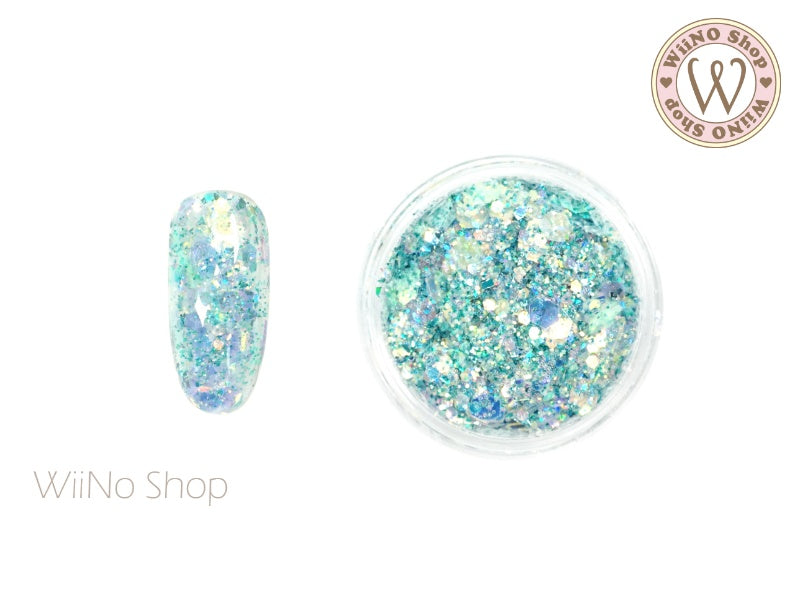 Aqua Ice Iridescent Hexagon Mix with Glitter Dust (IR07)