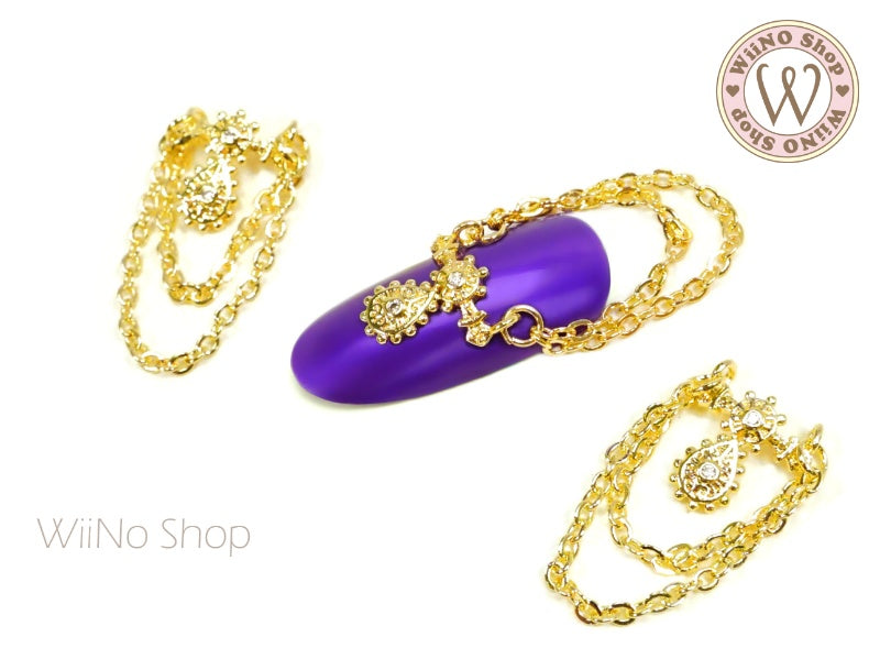 Retro Drop Pattern Nail Jewelry Charm with Chain - 1 pc