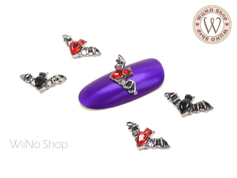 Bat with Crystal Nail Metal Charm - 2 pcs