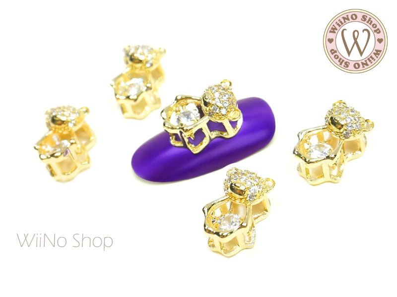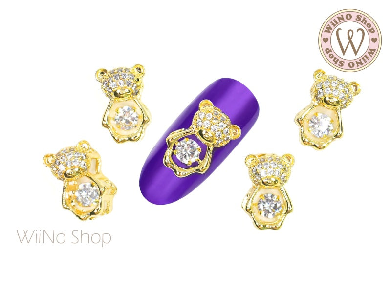 Bear with Spin Crystal Nail Jewelry Charm - 2 pcs
