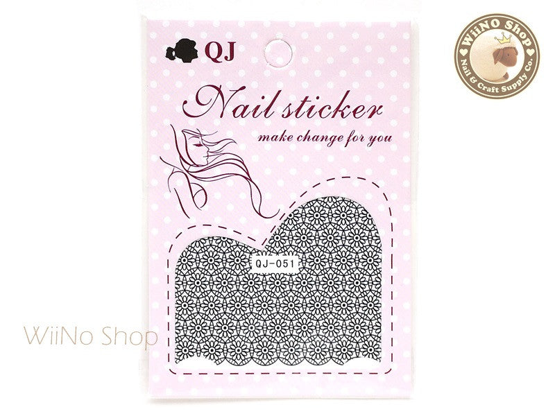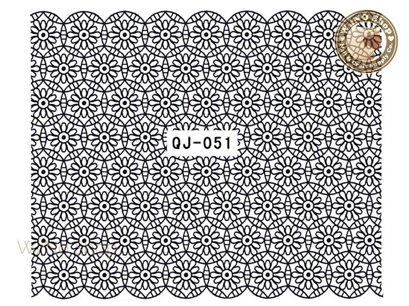 Black Circle Flower Pattern Water Slide Nail Art Decals - 1pc (QJ-051)