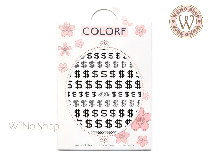 Black Dollar Sign Adhesive Nail Art Sticker - 1 pc (CB-130B)