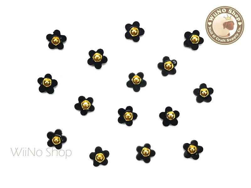 Black Five Petal Flower Nail Charm Nail Art - 5 pcs