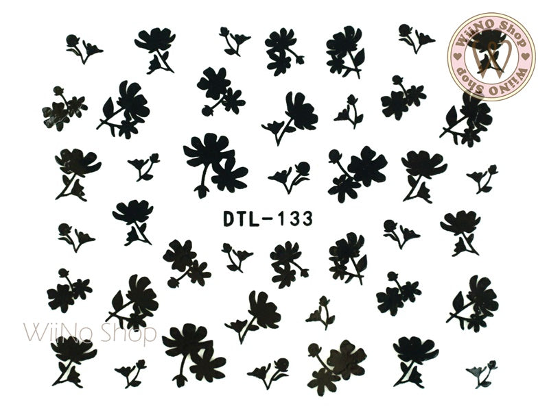 Black Floral Nail Art Sticker - 1 pc (DTL-133B)