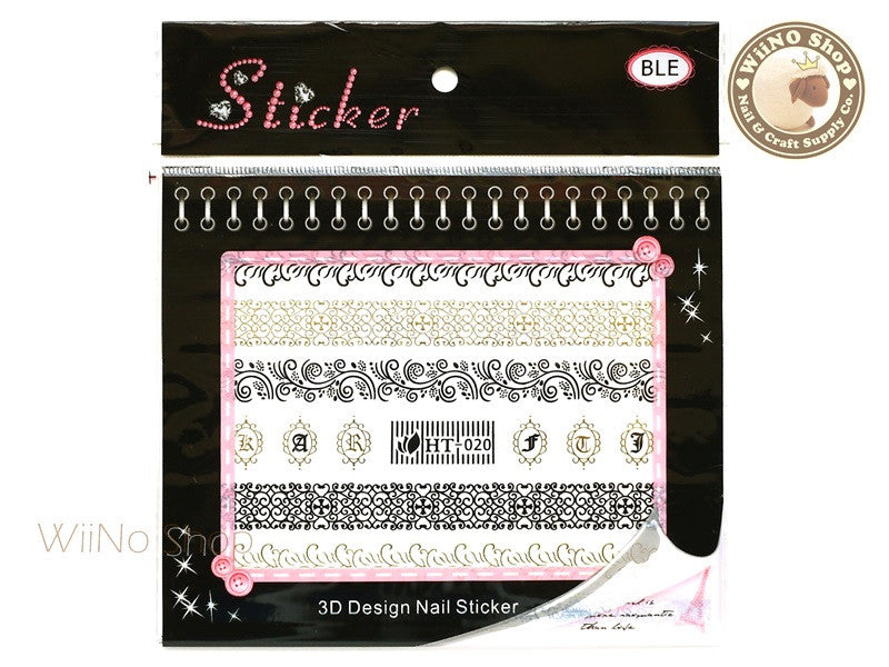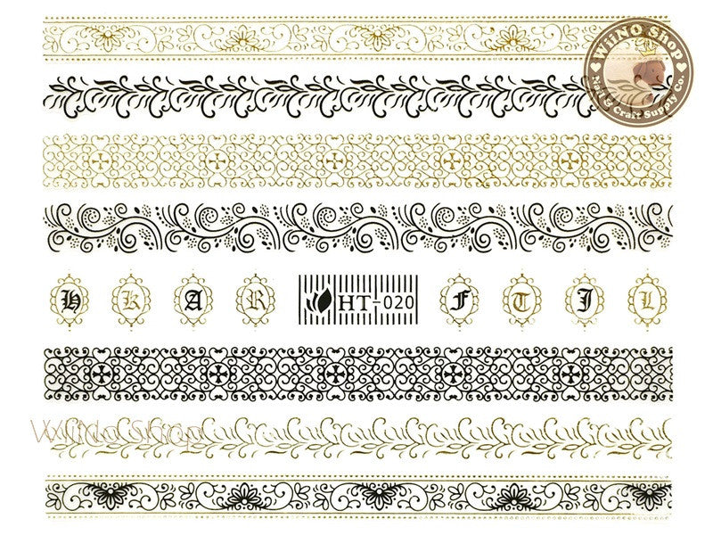 Black Gold Pattern Adhesive Nail Sticker Nail Art - 1 pc (HT-020)
