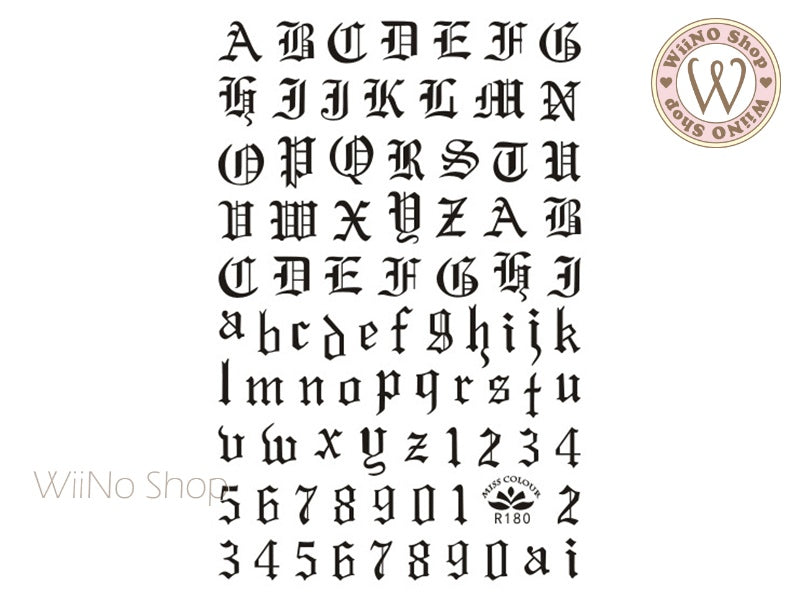 Black Old English Letter Adhesive Nail Art Sticker - 1 pc (R180B)