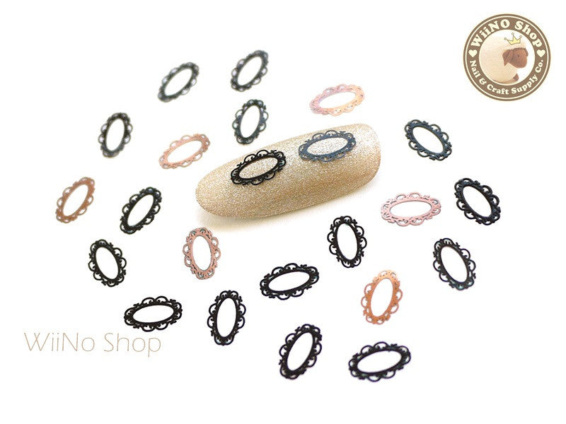 Black Oval Lace Frame Ultra Thin Nail Art Metal Decoration - 25 pcs