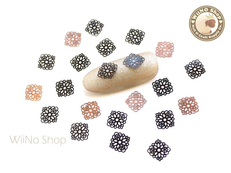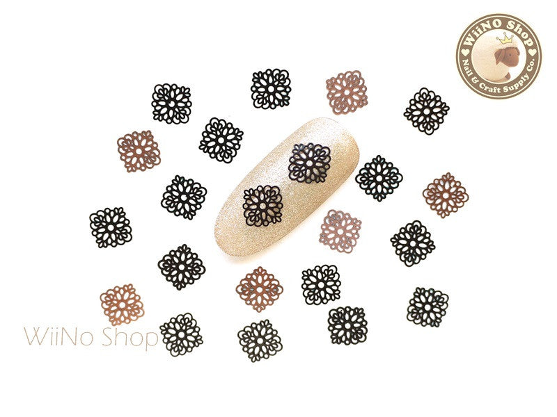 Black Square Floral Pattern Ultra Thin Nail Art Metal Decoration - 25 pcs