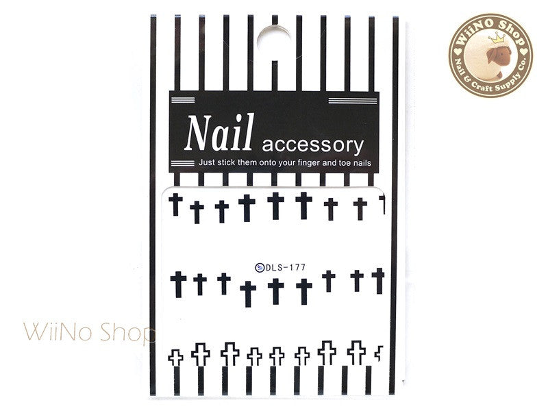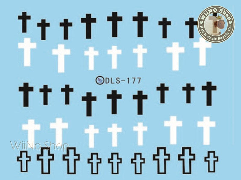 Black White Cross Water Slide Nail Art Decals - 1pc (DLS-177)