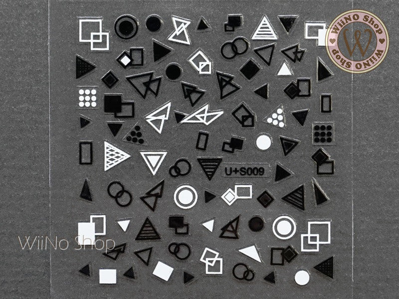 Black White Geometry Pattern Adhesive Nail Art Sticker - 1 pc (U+S009)