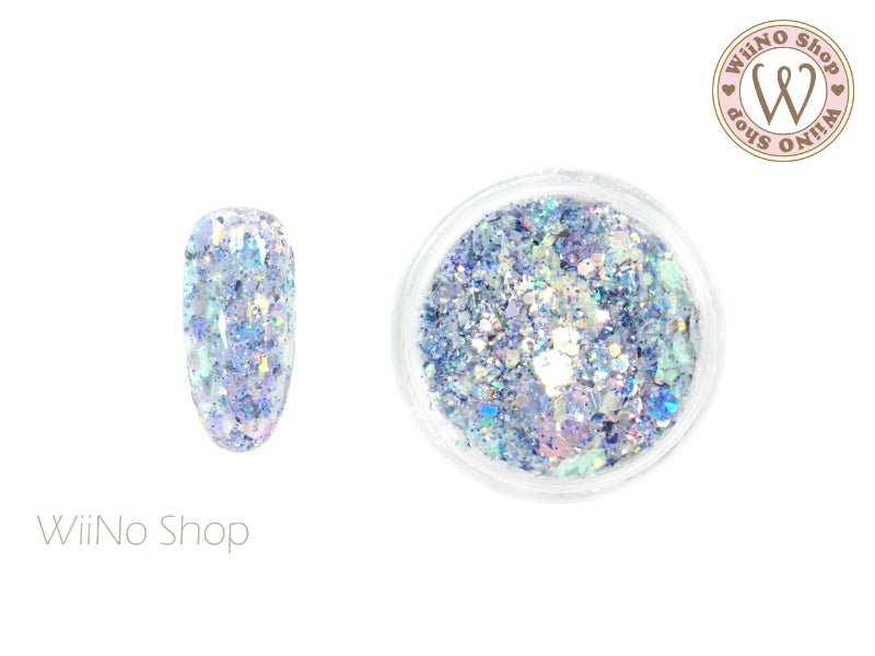 Blue Ice Iridescent Hexagon Mix with Glitter Dust (IR06)