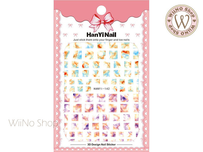 Blue Purple Marble Square Adhesive Nail Art Sticker - 1 pc (HY-142)