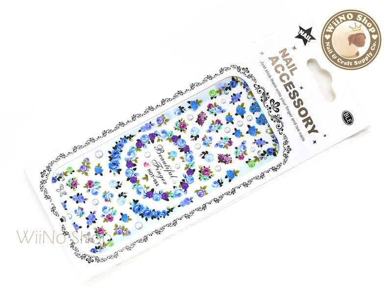 Blue Rose Bouquet Water Slide Nail Art Decals - 1pc (HOT-053)