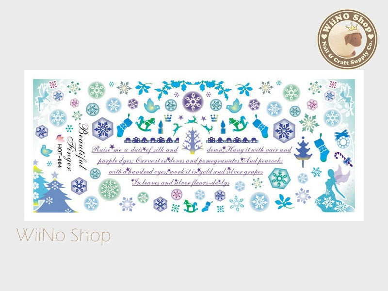 Snowflakes Christmas Blue Water Slide Nail Art Decals - 1pc (HOT-004)