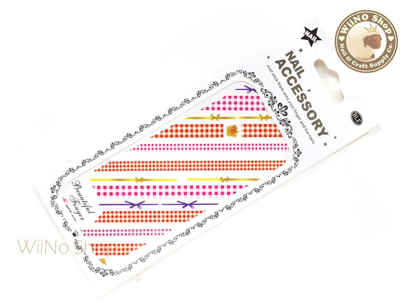 Pink Orange Gingham Pattern Water Slide Nail Art Decals - 1pc (HOT-042)