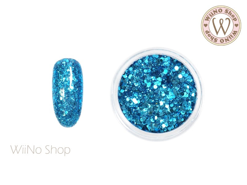 Cerulean Blue Hexagon Mix with Glitter Dust (A29)