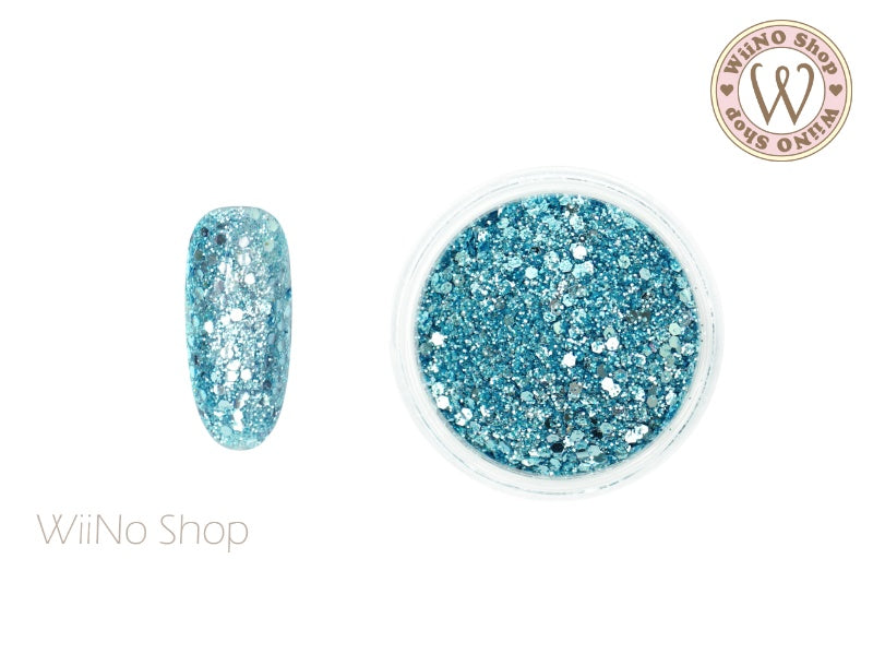 Blue Turquoise Hexagon Mix with Glitter Dust (A01)